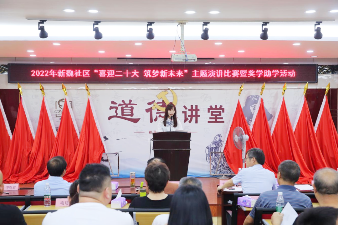 为迎接党的二十大胜利召开,厚植学生爱党、爱国的情怀,8月10日下午,新魏花园社区党总支开展“喜迎二十大 筑梦新未来”主题演讲比赛和奖学助学活动。魏村街道关工委常务副主任唐士胜、安家中心小学副校长周剑飞、学生代表及居民代表等参加活动。