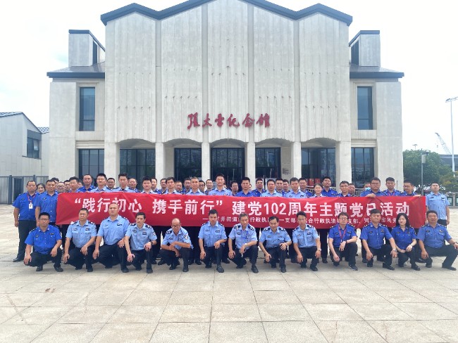 为庆祝中国共产党成立102周年,弘扬伟大建党精神,进一步推进学习贯彻习近平新时代中国特色社会主义思想主题教育,6月29日,三井街道综合行政执法局一支部联合二支部及河海派出所党支部,一同前往张太雷纪念馆开展“践行初心 携手前行”中国共产党成立102周年主题党日活动。